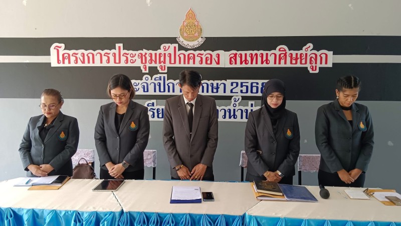 นายโอภาส คงยศ ผู้อำนวยการโรงเรียนบ้านอ่าวน้ำบ่อ พร้อมด้วยนางหทัยรัตน์ เสี้ยมสอน หัวหน้าโครงการประชุมผู้ปกครอง (สนทนาศิษย์ลูก) ปีการศึกษา 2568 และหัวหน้างานทั้ง 4 ฝ่าย ดำเนินการประชุมผู้ปกครอง ประจำภาคเรียนที่ 2 ปีการศึกษา 2568 เพื่อชี้แจงนโยบายการบริหารจัดการศึกษา หลังจากนั้นผู้ปกครองเข้าพบปะครูประจำชั้นเพื่อรับฟังเสนอแนวทางการพัฒนานักเรียน สร้างข้อตกลงร่วมกัน เวลา 13.30 น. - 15.-30 น. ณ โรงเรียนบ้านอ่าวน้ำบ่อ เมื่อวันที่ 14 เดือนพฤศจิกายน พ.ศ.2568 |