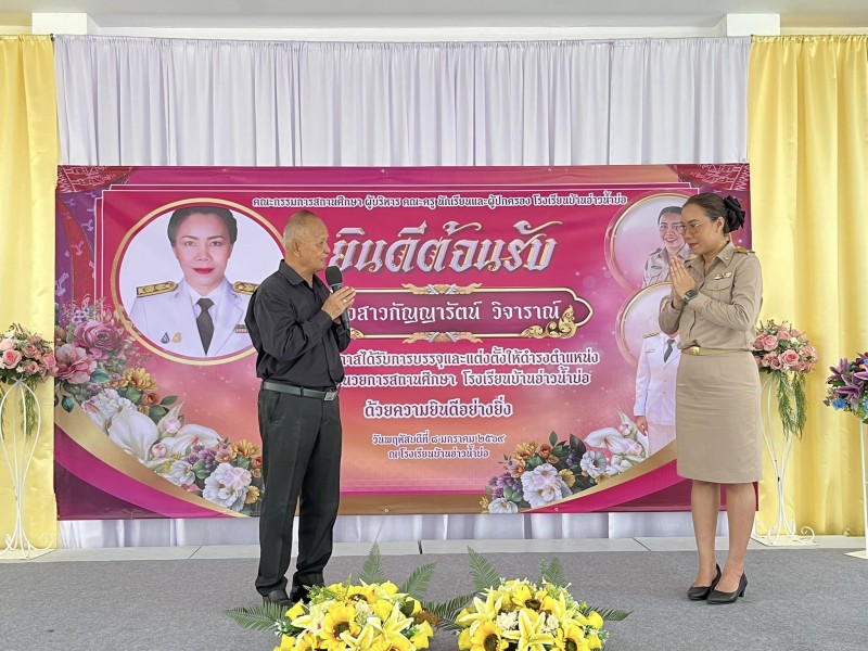 นายโอภาส คงยศ ผู้อำนวยการโรงเรียนบ้านอ่าวน้ำบ่อ พร้อมด้วยคณะครู และคณะกรรมการสถานศึกษา ร่วมให้การต้อนรับนางสาวกัญญารัตน์ วิจาราณ์ เนื่องในโอกาสดำรงตำแหน่ง รองผู้อำนวยการโรงเรียนบ้านอ่าวน้ำบ่อ โดยได้รับเกียรติจาก นายทิวา ลิ่มสงวน ประธานคณะกรรมการสถานศึกษาโรงเรียนบ้านอ่าวน้ำบ่อ เป็นประธานกล่าวแสดงความยินดี พร้อมด้วยคณะแขกผู้มีเกียรติ ด้วยบรรยากาศที่อบอุ่นและเสริมสร้างขวัญกำลังใจ ในการปฏิบัติราชการร่วมกันต่อไปอย่างมีประสิทธิภาพ เมื่อวันพฤหัสบดี ที่ 8 มกราคม พ.ศ.2569 (ภาพครูนูรีซัน ครูอารินนา/ข่าวครูต้นไม้) |