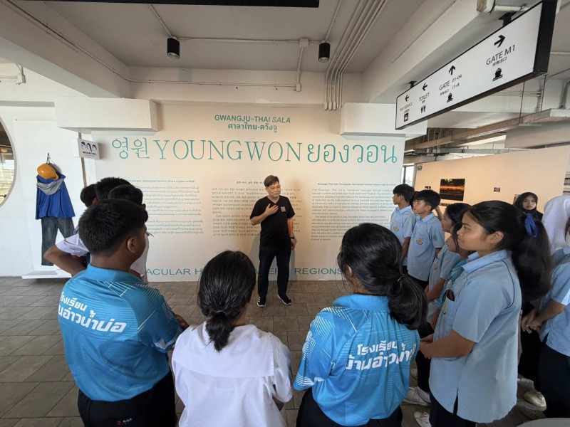นายโอภาส คงยศ ผู้อำนวยการโรงเรียนบ้านอ่าวน้ำบ่อ มอบหมายให้นางสาว กัญญารัตน์ วิจาราณ์ รองผู้อำนวยการโรงเรียนบ้านอ่าวน้ำบ่อ พร้อมด้วยคณะครูนำนักเรียนเข้าร่วมกิจกรรมเยี่ยมชมนิทรรศการศาลายองวอน เป็นส่วนหนึ่งของงาน “Thailand Biennale Phuket 2025” ซึ่งจัดแสดงผลงานศิลปะร่วมสมัยภายในเขตพื้นที่ตําบลวิชิต เพื่อเป็นการเสริมสร้างประสบการณ์การเรียนรู้ด้านศิลปะร่วมสมัย ส่งเสริมทักษะการคิดสร้างสรรค์ และเป็นพื้นที่ให้เยาวชนได้สะท้อนอัตลักษณ์ และมุมมองต่อชุมชนของตนเองผ่าน กระบวนการศิลปะ ณ สถานที่จัดแสดงงาน ท่าเรือวิสิษฐ์พันวา โดยมี รศ.ดร.บัณฑิต จันทรโรจนกิจ ภัณฑารักษ์ ธวัชชัย พันธุ์สวัสดิ์ อาจิณโจนาธาน อาจิณกิจวนะ วรรลยางกูร สุรเจต ทองเจือ คณะศิลปิน เมื่อวันที่ 30-31 มกราคม พ.ศ. 2569 |
