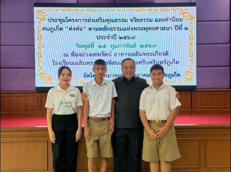 นายโอภาส คงยศ ผู้อำนวยการโรงเรียนบ้านอ่าวน้ำบ่อ นางสาว กัญญารัตน์ วิจาราณ์ รองผู้อำนวยการโรงเรียนบ้านอ่าวน้ำบ่อ ได้มอบหมายให้ครูนวรัตน์ วุ่นบัว นำนักเรียนเข้าร่วมโครงการส่งเสริมคุณธรรม จริยธรรม และค่านิยมคนภูเก็ต "ต่งห่อ" ตามหลักธรรมแห่งพระพุทธศาสนา ประจำปี 2569 โดยองค์การบริหารส่วนจังหวัดภูเก็ต ณ ห้องประชุมม่วงเทพรัตน์ อาคารเฉลิมพระเกียรติ โรงเรียนเฉลิมพระเกียรติสมเด็จพระศรีนครินทร์ภูเก็ต เมื่อวันพุธที่ 25 กุมภาพันธ์ 2569 |
