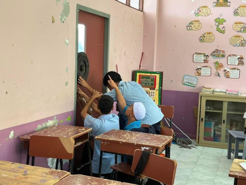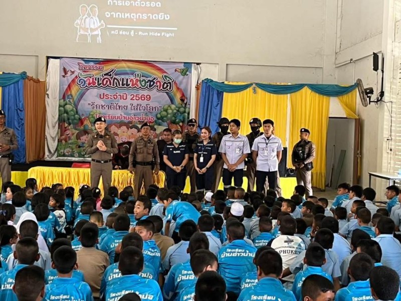นายโอภาส คงยศ ผู้อำนวยการโรงเรียนบ้านอ่าวน้ำบ่อ นางสาว กัญญารัตน์ วิจาราณ์ รองผู้อำนวยการโรงเรียนบ้านอ่าวน้ำบ่อ คณะครู บุคลากรทางศึกษา และนักเรียนโรงเรียนบ้านอ่าวน้ำบ่อ เข้าร่วมการฝึกอบรม หนี-ซ่อน-สู้ เพื่อเตรียมพร้อมในการรับมือหากเกิดสถานการณ์มีภัยคุกคามเข้ามาภายในโรงเรียน รู้จักเอาตัวรอด ปลอดภัย และลดการสูญเสีย โดยได้รับความร่วมมือจากสถานีตำรวจภูธรวิชิตที่เข้ามาฝึกอบรม และฝึกซ้อมสถานการณ์จำลองเมื่อเวลา 09.00 - 10.30 น. วันที่ 25 กุมภาพันธ์ พ.ศ. 2569 |
