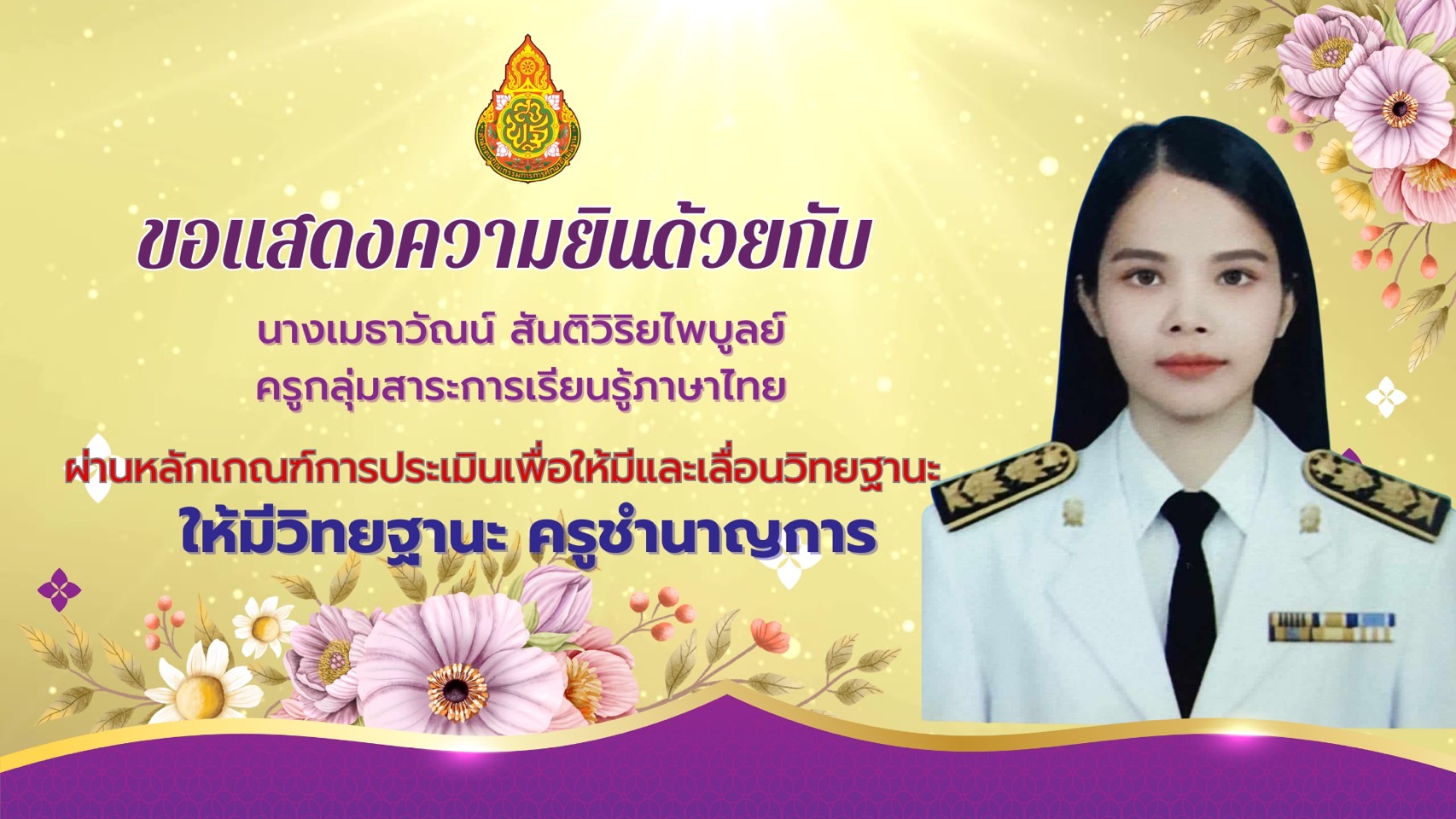 นางเมธาวัณน์ สันติวิริรยไพบูลย์ วิทยฐานะ ครูชำนาญการ