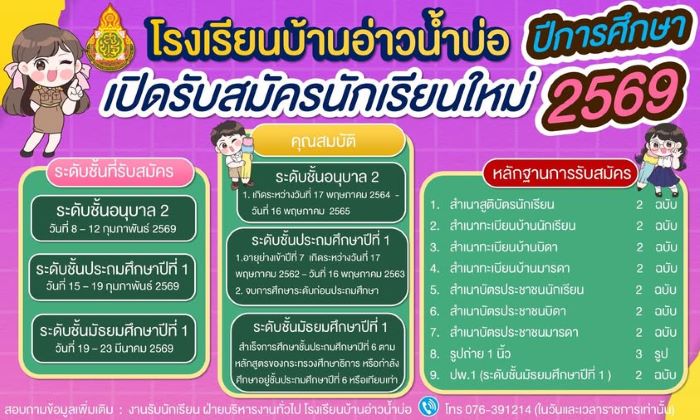 เรื่อง ประกาศรายชื่อนักเรียนที่มีสิทธิ์เข้าเรียนระดับชั้นอนุบาล 2 โรงเรียนบ้านอ่าวน้ำบ่อ ประจำปีการศึกษา 2567 20 มี.ค. 67